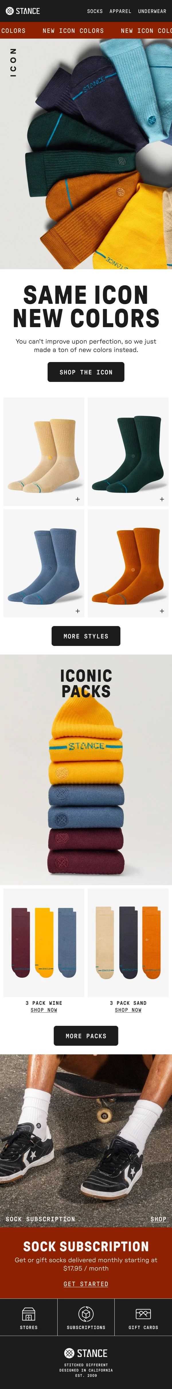 These selected examples from our partnership with Stance highlight how Summerjax functions as an integrated creative partner across the full scope of brand needs, providing 360 creative support from brief through execution across campaign initiatives and ongoing day-to-day content.